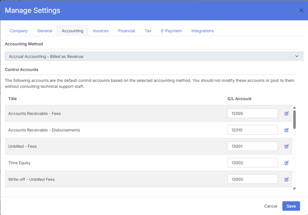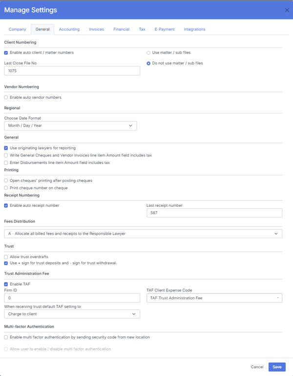 These settings ensure compliance with trust accounting standards and proper financial posting across all modules.