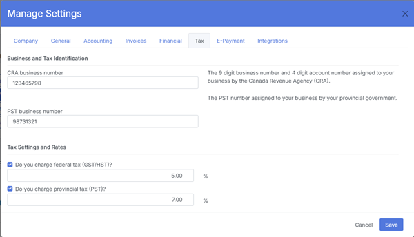 Manages all tax‑related settings used across invoices, expenses, and financial reports.