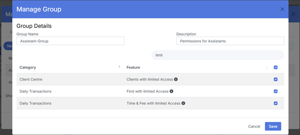Clear identification of the group’s purpose (e.g., “Billing Team”, “Trust Accounting”, “Lawyers”).